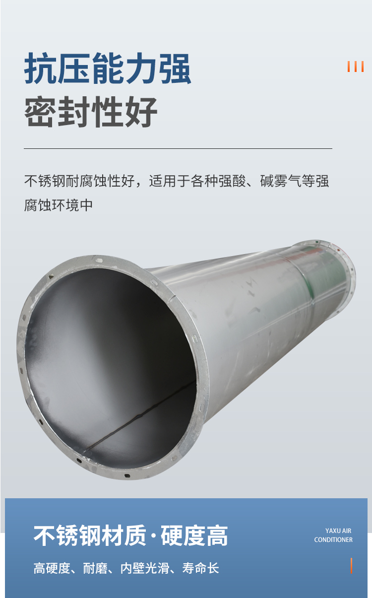 不銹鋼三通安裝方便,連接點(diǎn)少,通風(fēng)阻力小,通風(fēng)噪聲小,強(qiáng)度與剛性均好。螺旋風(fēng)管無氫脆、無溫度危害,耐腐蝕性好,并且采用熱鍍鋅方法完成,適用于各種強(qiáng)酸、堿霧氣等強(qiáng)腐蝕環(huán)境。